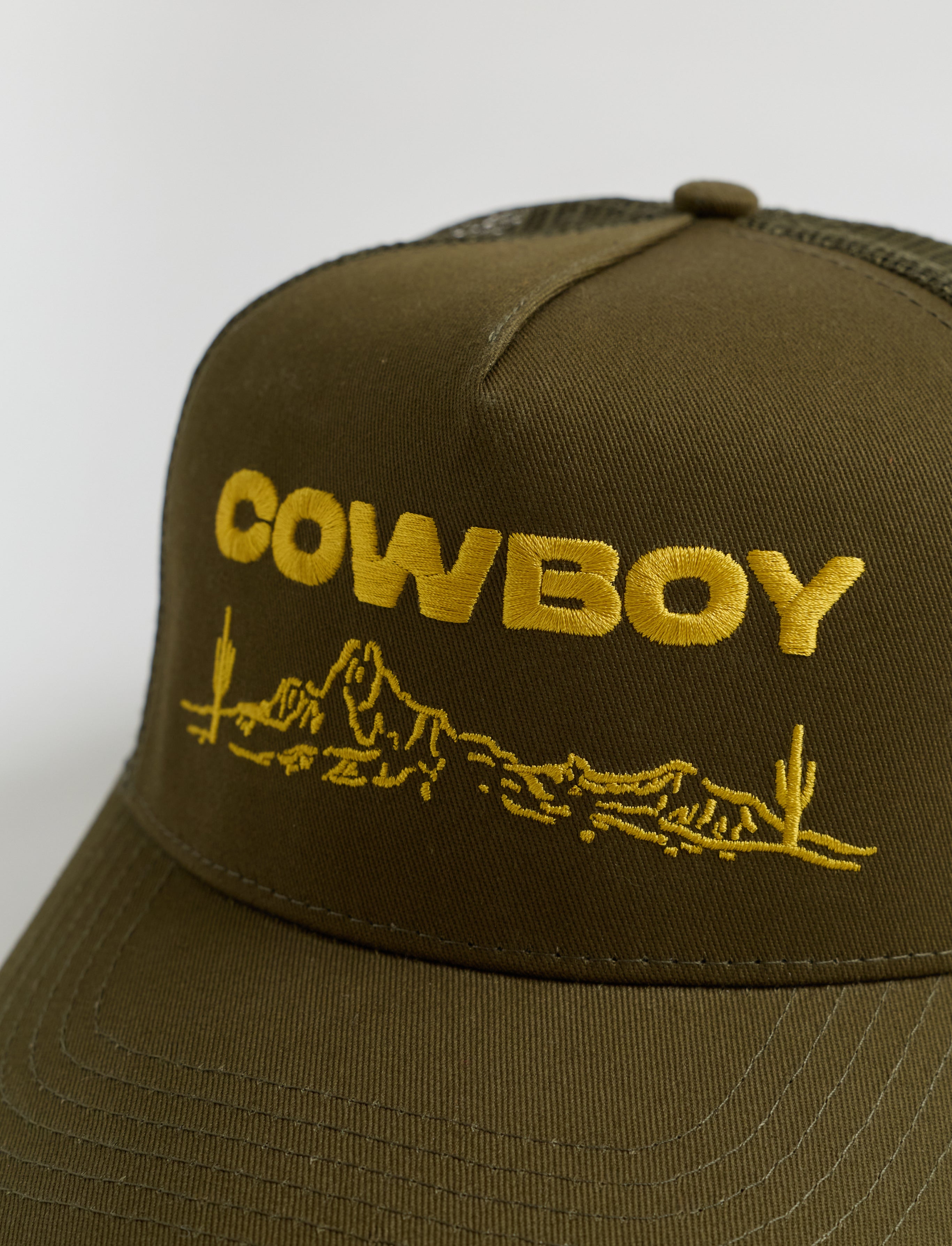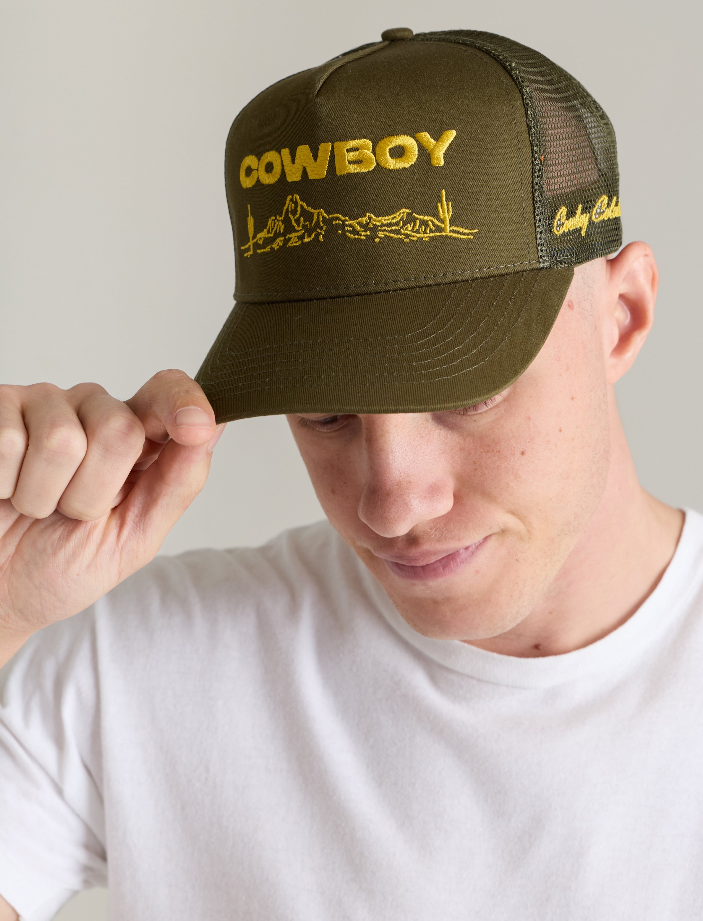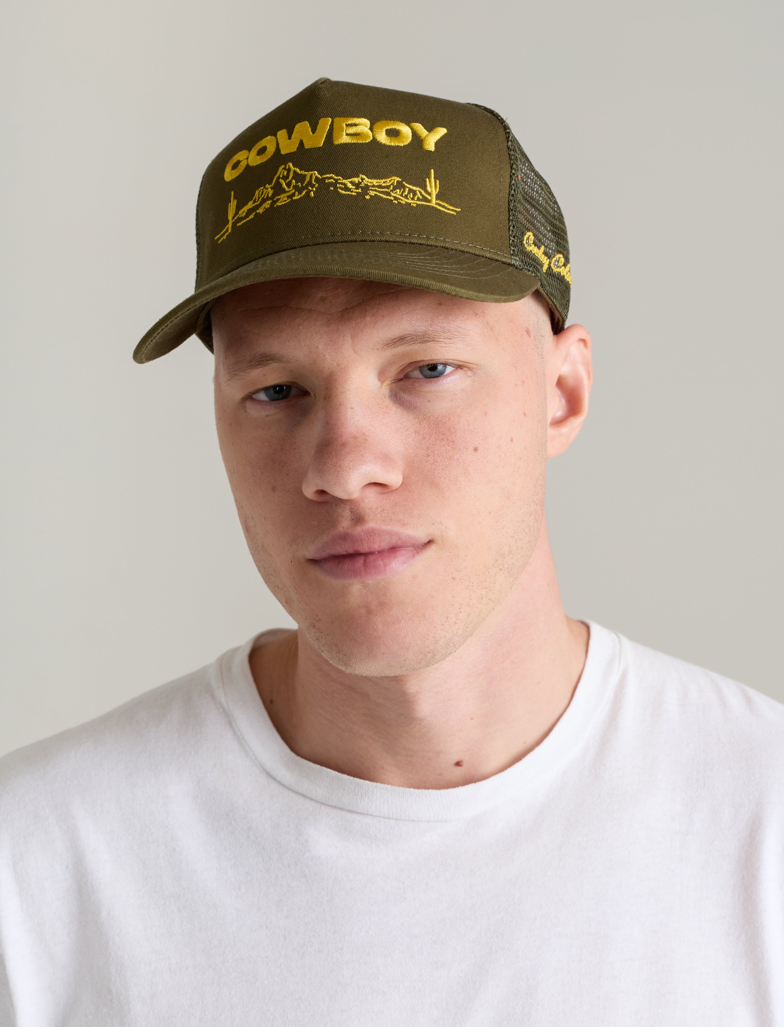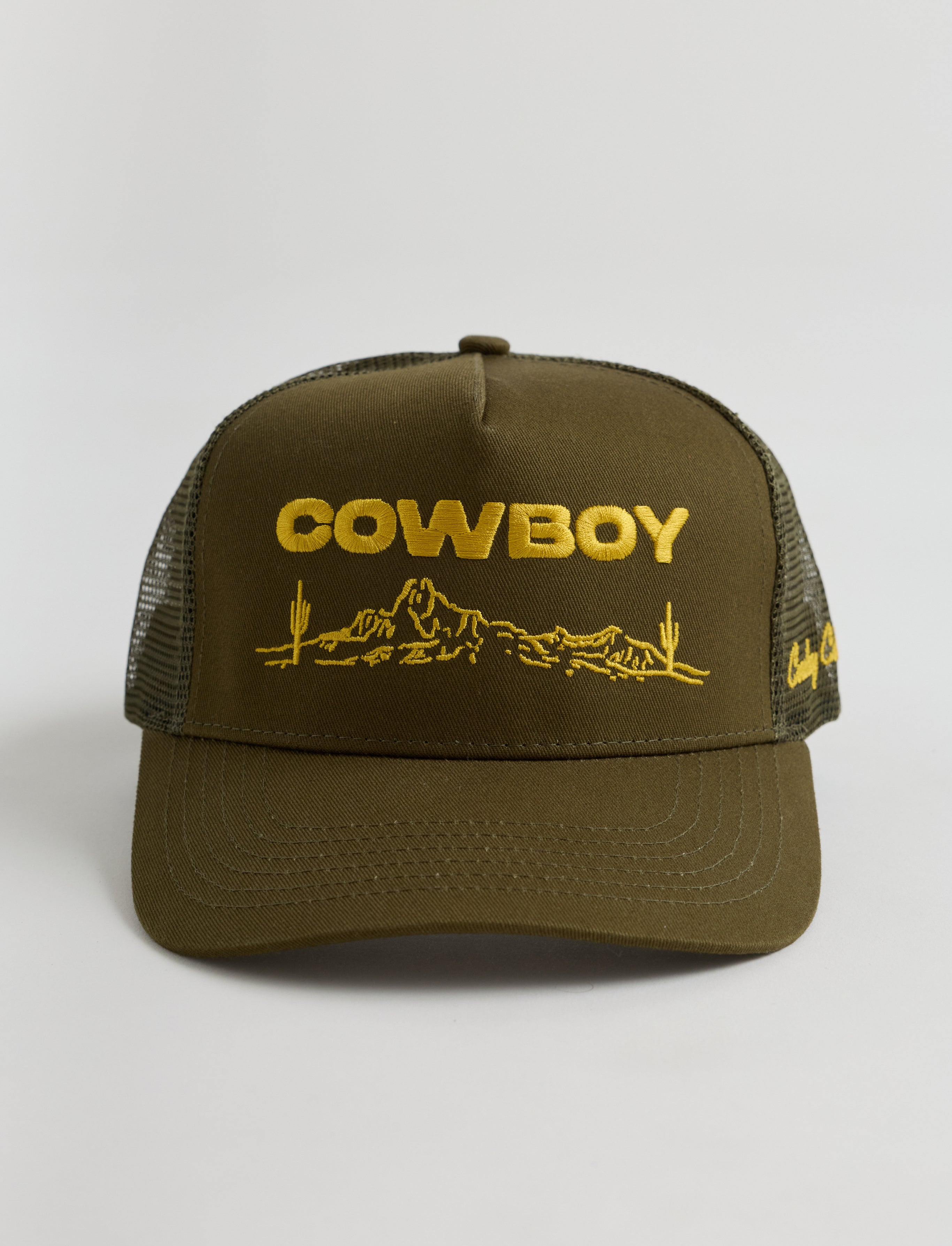 A nod to the stillness of matcha and the strength of the West. This Cowboy Colostrum original features gold mountain embroidery, a quiet statement of balance, clarity, and grounded power.