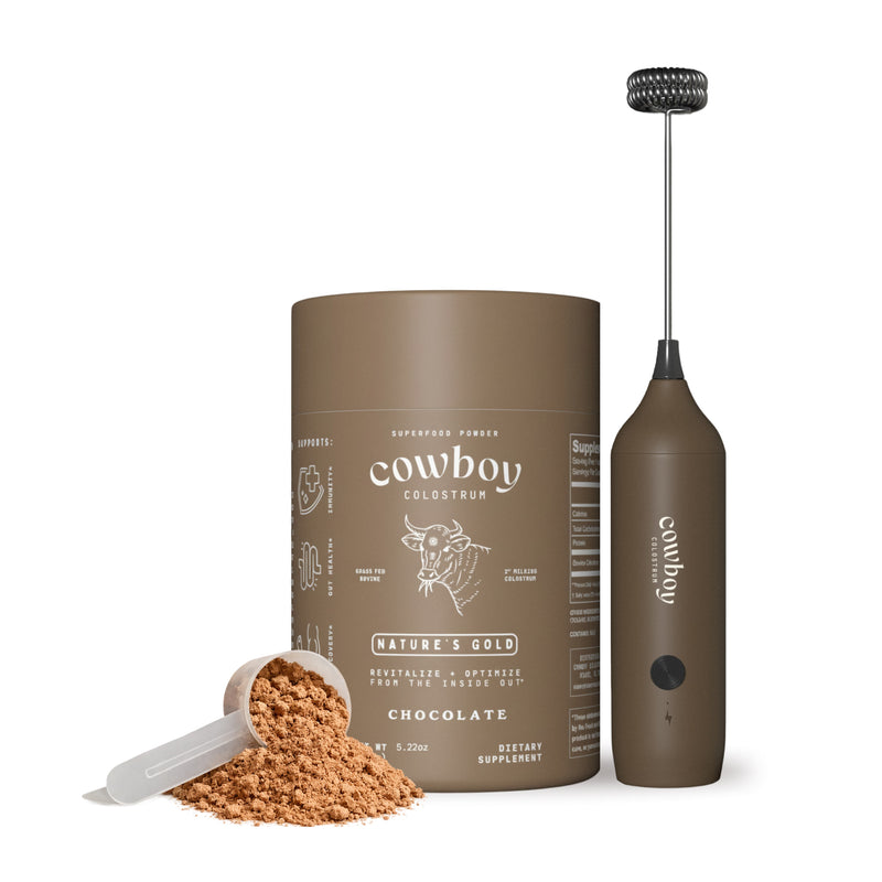 Whole, grass-fed colostrum with organic cacao and monk fruit.
