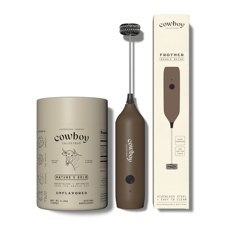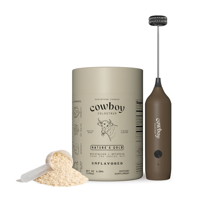Cowboy Colostrum only sources first-day colostrum - collected within 24 hours after every calf is nourished - to preserve maximum bioactive potency. Our colostrum stays unstripped, whole, and as close to nature as possible. Unlike many brands that skim or strip fat, Cowboy keeps colostrum in its whole, full-fat form, maintaining all naturally occurring nutrients, peptides, and immune factors for optimal efficacy. Each serving delivers a robust 3 g dose - higher than most competitors - and comes in delicious, easy-to-mix flavors like vanilla, cacao, and unflavored.