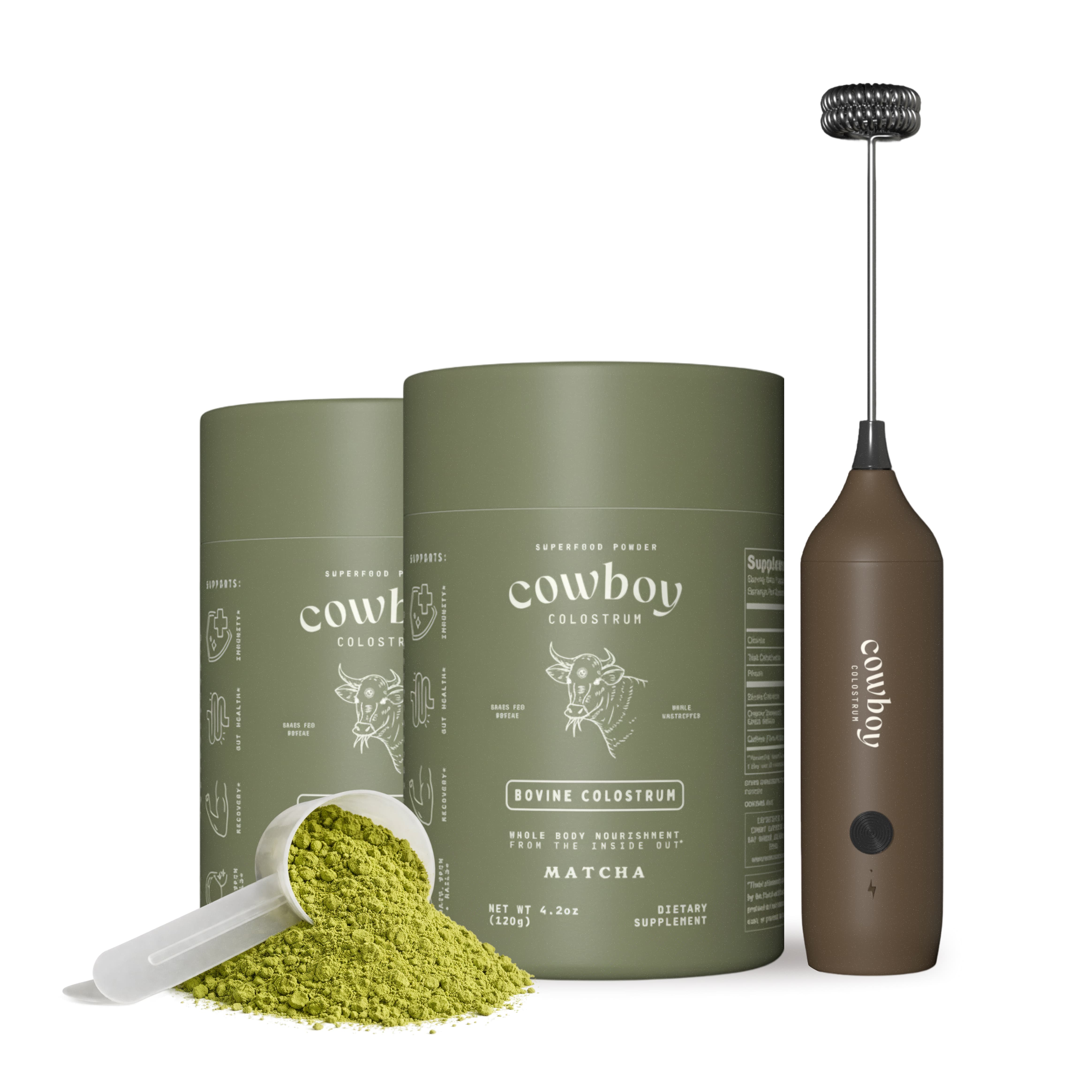 A full serving of Japanese ceremonial-grade matcha blended with whole, grass-fed colostrum.