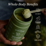 A full serving of Japanese ceremonial-grade matcha blended with whole calf-first colostrum from U.S. grass-fed dairy cows