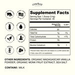 Whole grass-fed colostrum with organic madagascar vanilla powder and monk fruit.