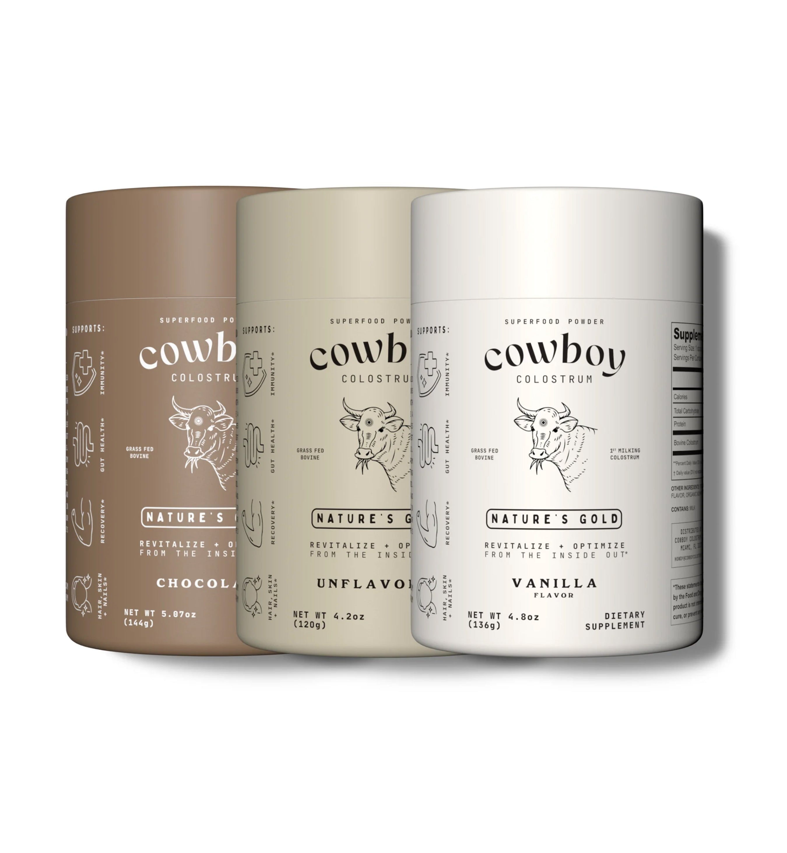 Chocolate, Unflavored + Vanilla Colostrum